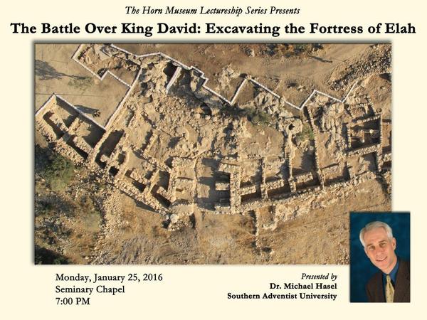 On Monday, January 25, Dr. Michael Hasel (Southern Adventist University) will present "The Battle Over King David: Excavating the Fortress of Elah”