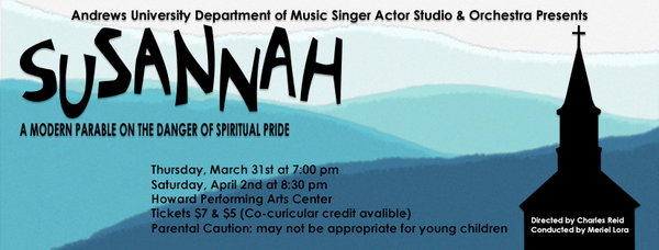 Carlisle Floyd's two act opera, Susannah, premiered in 1955 at the height of McCarthyism. Set in an isolated holler in the Smokey Mountains, this tragic story unfolds when the innocent Susannah is singled out by her community for being a sinner. Susannah is the second most performed American opera in the world due to its compelling music, depth of characters and emotional story line. Although it's original purpose was to critique the McCarthy Trials, it is relevant today in light of the current political campaign and a general distrust for the "other" among us. This gripping tale is presented by the Department of Music's Singer Actor Studio and Orchestra. It is directed by Professor Charles Reid, conducted by Graduate Assistant, Meriel Lora, and even includes a starring role for Professor Stephen Zork. The director commented, "At its best, art is not there to merely entertain us, but to challenge us, and this opera does just that." Parental Caution: Due to the mature subject matter of this tragedy, parent's are advised that the second act of the performance may not be appropriate for young children.