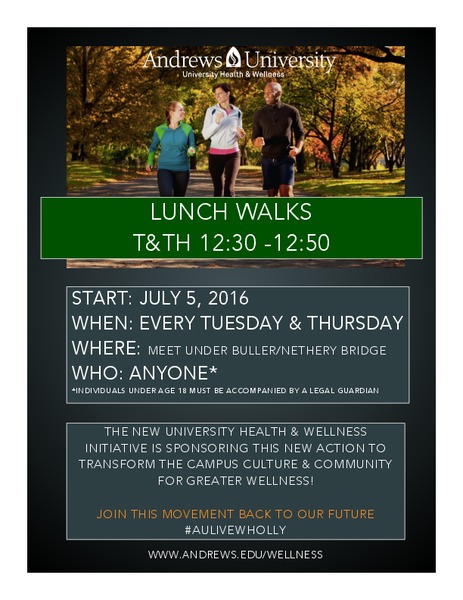 University Health & Wellness is excited to announce the weekly Tuesday & Thursday lunch walks from 12:30 - 12:50 starting on July 5. Two of our new Wellness Ambassadors, Deby Andvik and Gretchen Krivak, will be leading these walks. Join them to incorporate physical activity into your day and to meet new people to build an active and well community together!