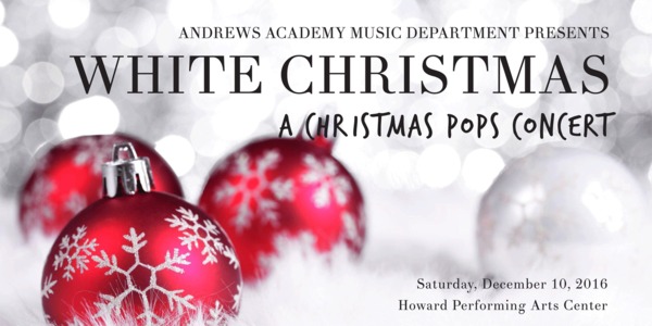 Andrews Academy Music Department will be presenting "A Christmas Pops Concert: White Christmas" on Saturday evening, December 10, 2016.  It will be a night of music and christmas cheer for all.
