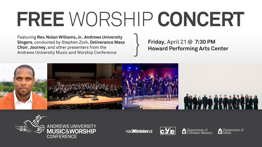 Featuring Grammy-nominated Rev. Nolan Williams, Jr., Andrews University Singers, conducted by Stephen Zork, Deliverance Mass Choir, Journey, and other presenters from the Andrews University Music and Worship Conference