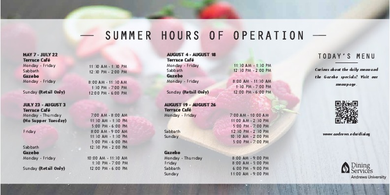 Summer is here! Dining Services will be operating on revised hours throughout the summer.