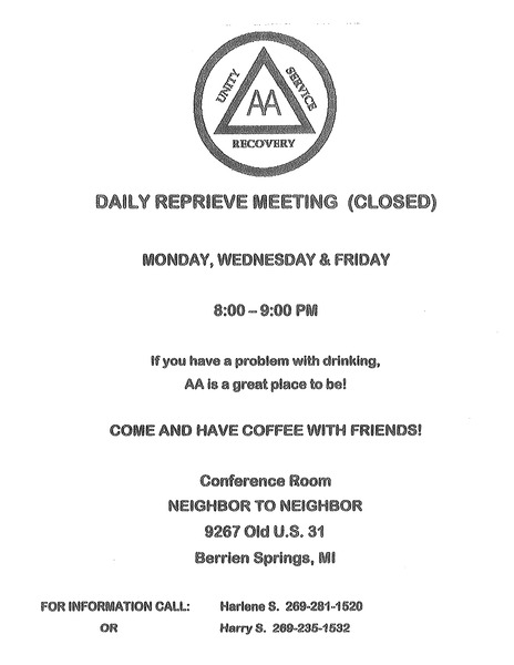 Alcoholics Anonymous Daily Reprieve Meeting (Closed)