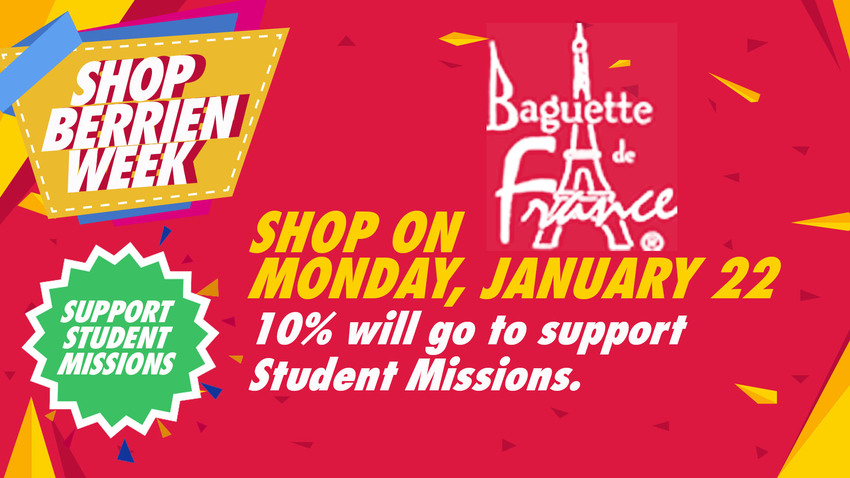 On Monday, Jan. 22, 10% of all your purchases at Baguette de France (Berrien Springs) will go to support Andrews Student Missions!
