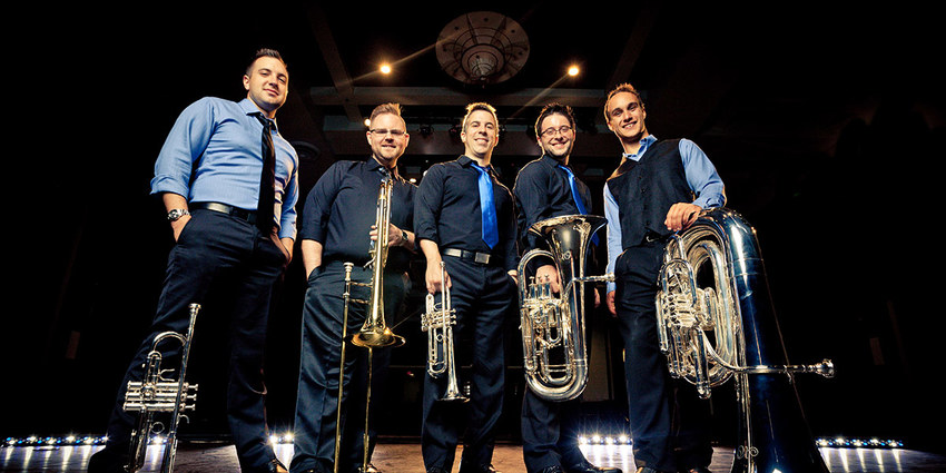 Founded primarily as a vehicle for promoting music education, Presidio Brass has become known as a contemporary brass ensemble that combines piano, percussion instruments, guitar and vocals with original arrangements to bring a fresh approach to well-loved music. Through their touring show of Hollywood’s greatest hits, “Sounds of the Cinema,” these five young men present film music with a good dose of wit and humor that together have become hallmarks of every Presidio Brass performance.