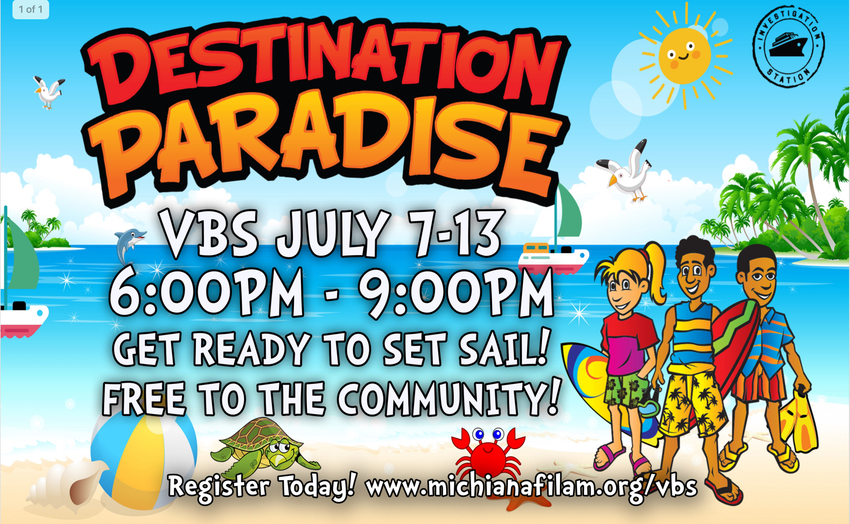 Get ready to set sail! VBS is heading to paradise! Free to the community!