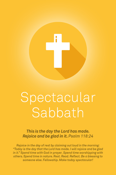 Rejoice in the day of rest by climing out loud in the morning: "Today is the day that the Lord has made. I will rejoice and be glad in it." Spend time with God in prayer. Spend time worshipping with others. Spend time in nature. Rest. Read. Reflect. Be a blessing to someone else. Fellowship. Make today spectacular!