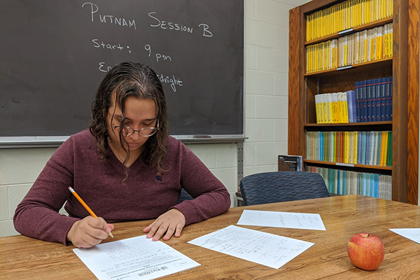 Senior math major Yaser Monterrey participates in the 80th annual William Lowell Putnam Competition.