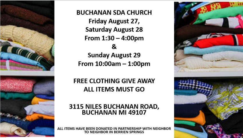 Location: Buchanan SDA Church, 3115 Niles Buchanan Road, Buchanan MI 49107