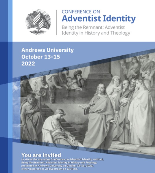 You are invited to attend the upcoming Conference on Adventist Identity titled, "Being the Remnant: Adventist Identity in History and Theology," presented at Andrews University from Oct. 13–15, 2022, either in person or via livestream on YouTube. Full program is below.