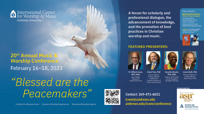 You are invited to "Blackventist Praise: Protest, Praise & Progress," an evening of Black Adventist history, praise, drama and celebration featuring artists Robert Hawkins and "Patience" as well as other local artists. More information at andrews.edu/icwm/conference.
