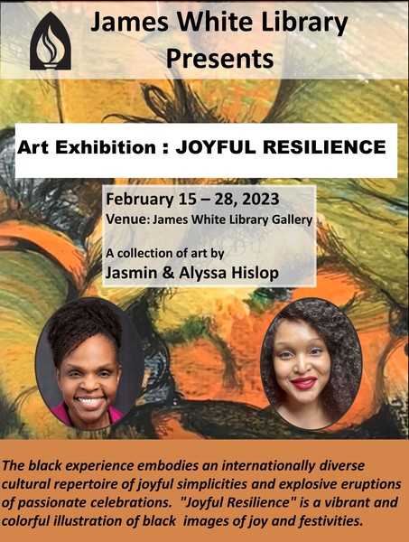 This exhibition features artwork created by mother and daughter duo Jasmin and Alyssa Hislop on the theme "Joyful Resilience."