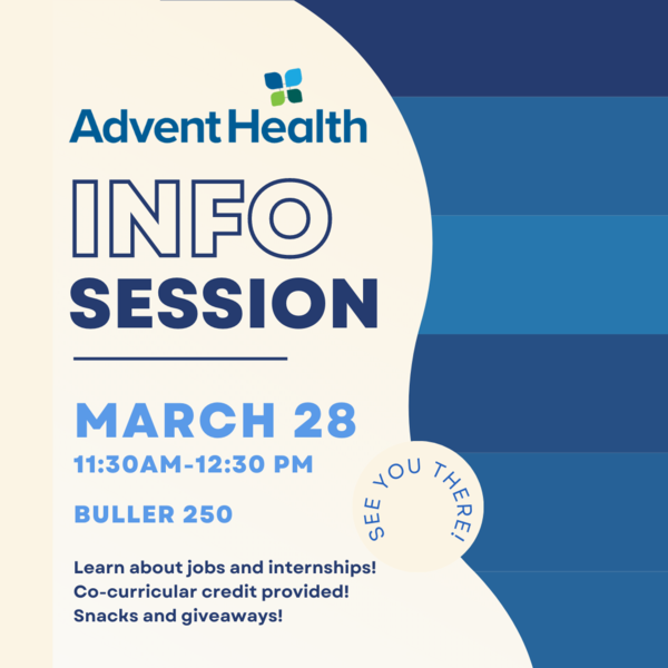 AdventHealth’s Talent Acquisition Leaders will be providing a presentation on how to transition from college to career! They understand the difficulty that may come with navigating the job market after graduating. This presentation will provide the tools to help you break into the industry of your choice and give you the best chance at starting a fulfilling career. For those students who are interested in a career with AdventHealth we will provide information on the careers and benefits that AdventHealth has to offer.