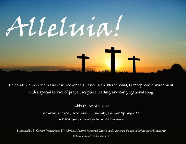 Sponsored by Le Groupe Francophone D’Andrews, a Pioneer Memorial Church study group on the campus of Andrews University