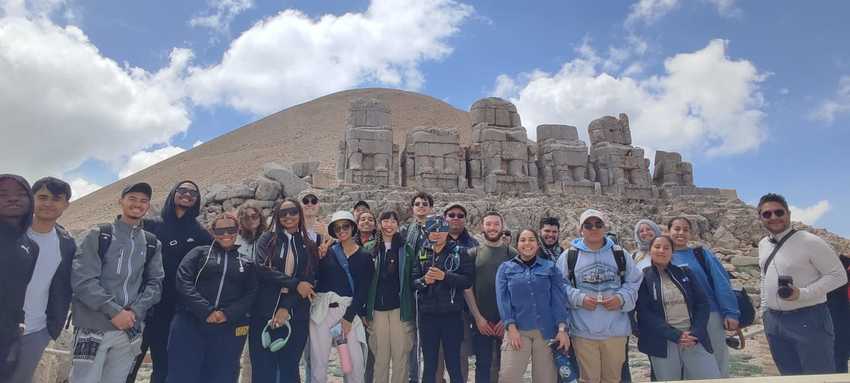 The 2023 Bible Lands Study Tour is currently traveling in Turkey and completes its tour next month in Egypt. Here the group celebrates their climb to the summit of Mount Nemrut. The tour is sponsored by the Departments of Biology, History & Political Science, and Religion & Biblical Languages.