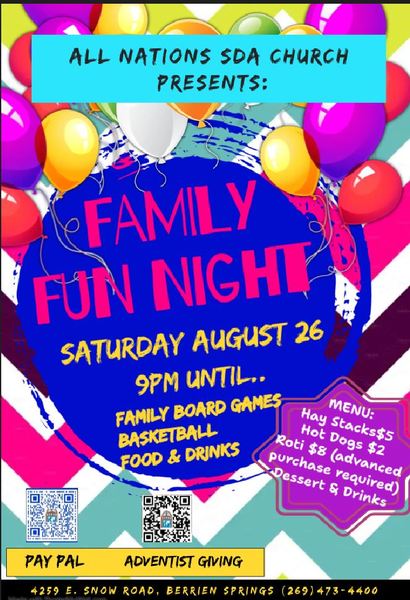 Where: All Nations SDA Church, 4259 E. Snow Rd., Berrien Springs, MI 49103