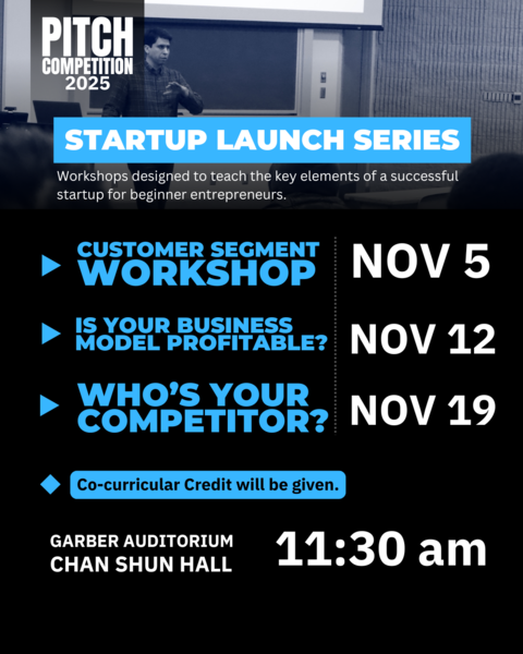 Prepare for the pitch competition through these interactive workshops, and possibly meet other entrepreneurs to team up with. This workshop will focus on teaching you how to create a business model for your startup and identify the sources of potential revenue.