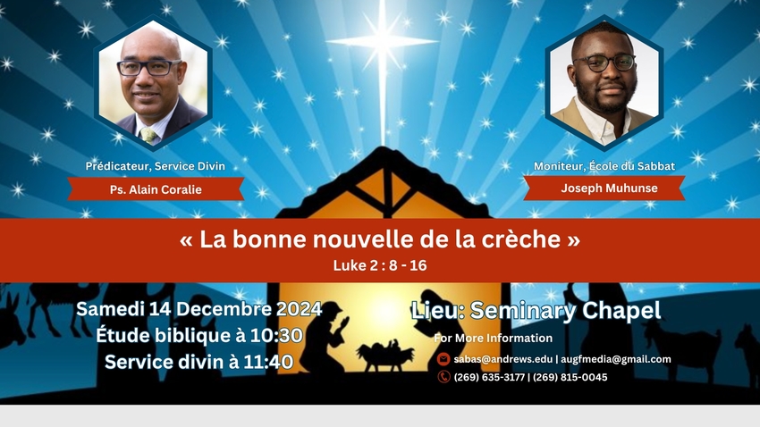 Worship will be at 11:45 a.m. with Pastor Alain Coralie in the Seminary chapel.