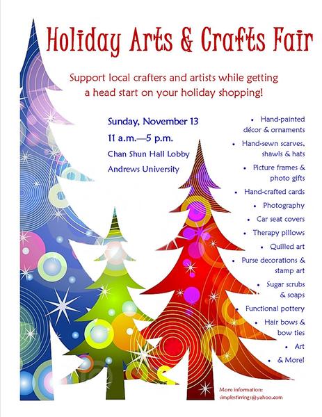 Join us for the 3rd Annual Holiday Arts & Crafts Fair! This event exists primarily to provide Adventist artists and crafters a venue at which to showcase their creative endeavors. Hundreds of hand-crafted items will be for sale!... read moreUpcoming Events
