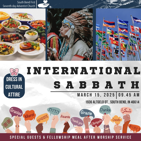 South Bend First Seventh-day Adventist Church will be holding an International Sabbath featuring several guest artists on Sabbath, March 15, 2025. A fellowship meal will be served after the service. The service will begin at 9:45 a.m. ... read more