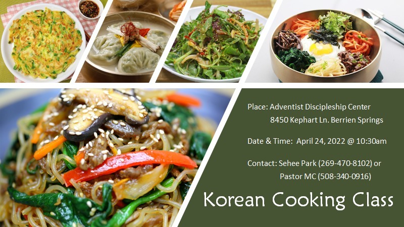 Living Word Fellowship is hosting a Korean Vegan Cooking Class this Sunday, April 24, at 10:30 a.m. You will not only watch what is being cooked but will prepare the dishes together and share all of them as...