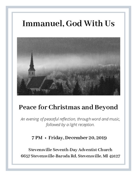 Join us at the Stevensville Seventh-Day Adventist Church on December 20 at 7 p.m. for an evening of peaceful reflection, through word and music, as we reflect on Immanuel, the true peace of the season—the peace that goes... read more