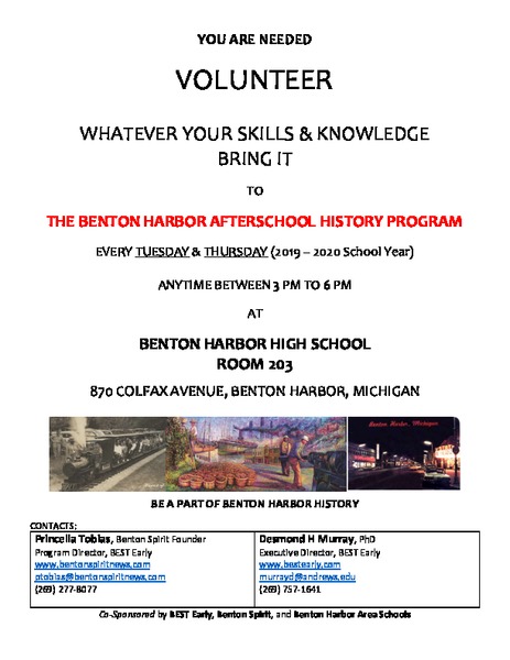 Please consider volunteering for the Benton Harbor After-school History Program.