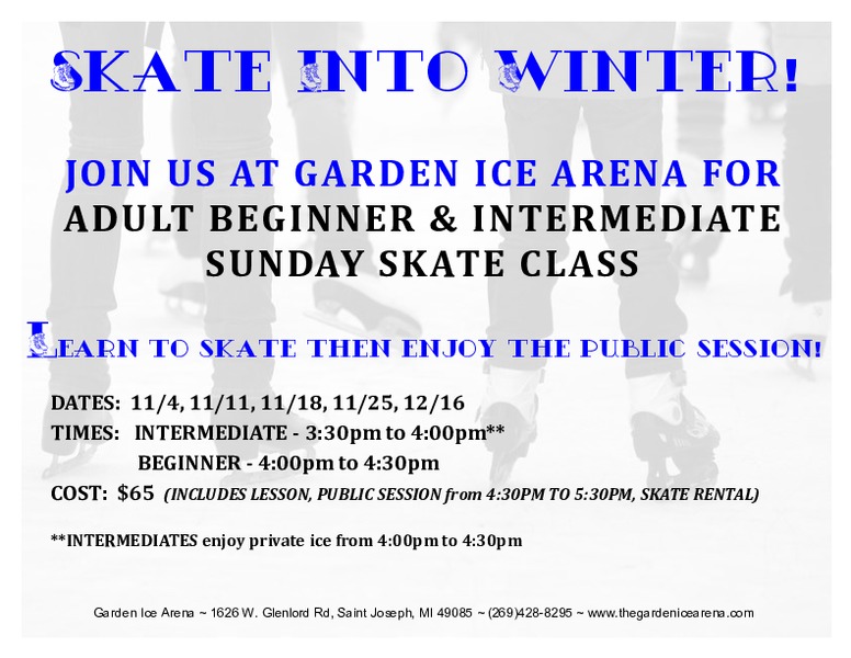 Join us at Garden Ice Arena for Adult Beginner & Intermediate Sunday Skate Class