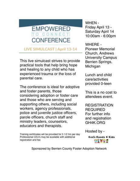 WHEN Friday, April 13–Saturday, April 14 10 a.m.–6 p.m. WHERE Pioneer Memorial Church Andrews University Campus, Berrien Springs, Michigan Lunch and child care/activities...