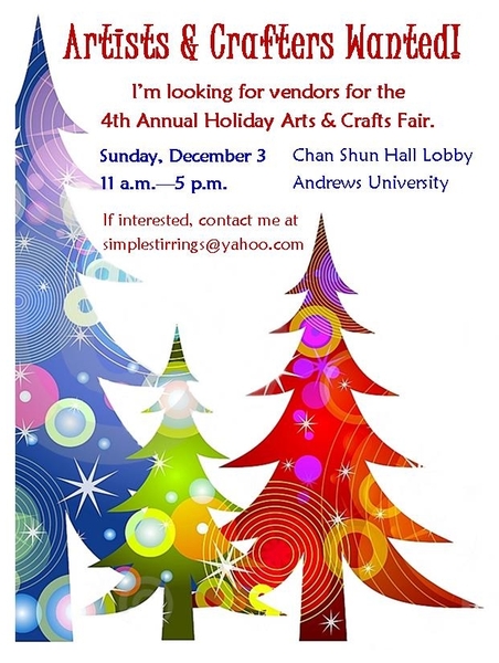 The Annual Holiday Arts & Crafts Fair exists primarily to provide Adventist artists and crafters a venue at which to sell their creations. This year's market will be on Sunday, December 3 in Chan Shun Hall. If you... read more