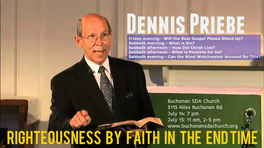 Buchanan Seventh-day Adventist Church 3115 Niles Buchanan Rd Buchanan MI 49107 Sabbath School: Saturday 9:30 a.m. Worship Service: Saturday 11 a.m. Prayer Meeting: Wednesday, 7 p.m.... read moreRighteousness by Faith in the End Time -July 14-15