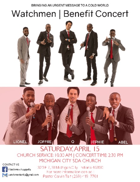 Niles Westside Adventist Church 1105 Grant St (at Fairview Ave) Niles, MI www.nileswestside.org Pastor: Darrel le Roux Sabbath School: 9:30 a.m. Church... read moreWatchmen Benefit Concert