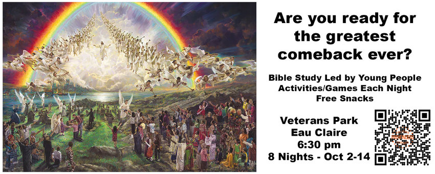Ryan Hayes, PhD, is the speaker at the Eau Claire Seventh-day Adventist Church this week. His message is titled “It’s About Time.” In this message Hayes ponders if time heals all wounds. He asks, “What role does science... read moreEau Claire SDA Church Service, Sept. 16