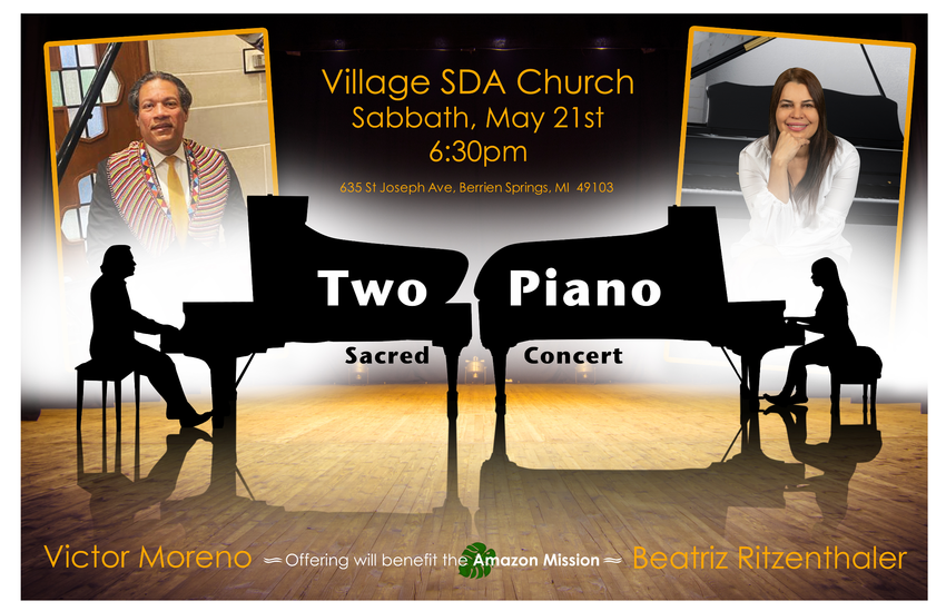 The Village SDA Church of Berrien Springs invites you to come and enjoy the sounds of two pianos playing the sacred hymns we all love and know. The concert is free, and an offering will be taken to...