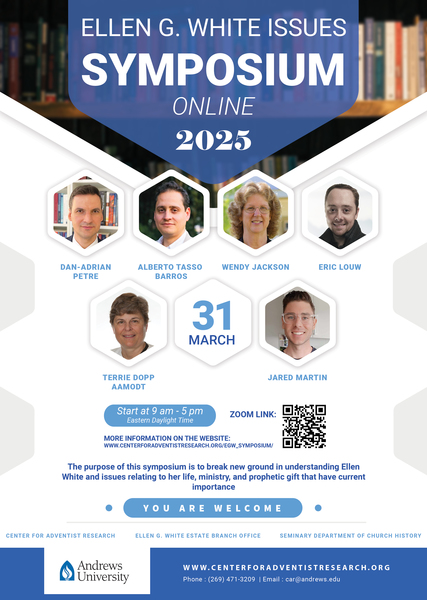 Virtual Ellen G. White Issues Symposium, April 1, 2024 Mark your calendar and join us for the virtual Ellen G. White Issues Symposium, sponsored by the Center for Adventist Research, the Ellen G. White... read more