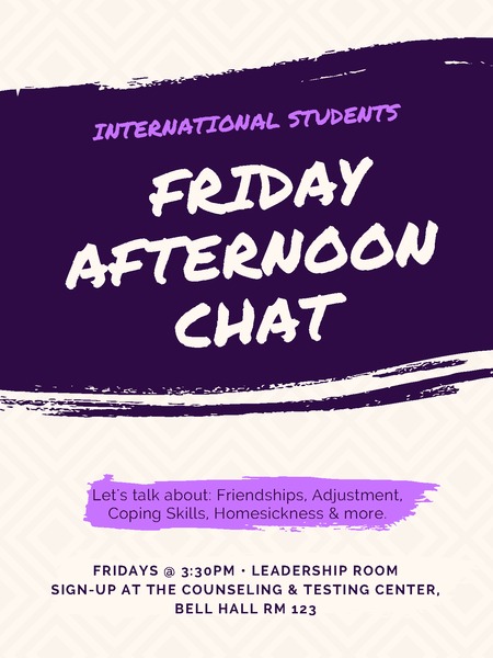 Did you know that counselors are people, too? Come hang out with the counselors of the Counseling & Testing Center, and enjoy the FREE FOOD, games, movies, etc. Ask about our "walking tacos."