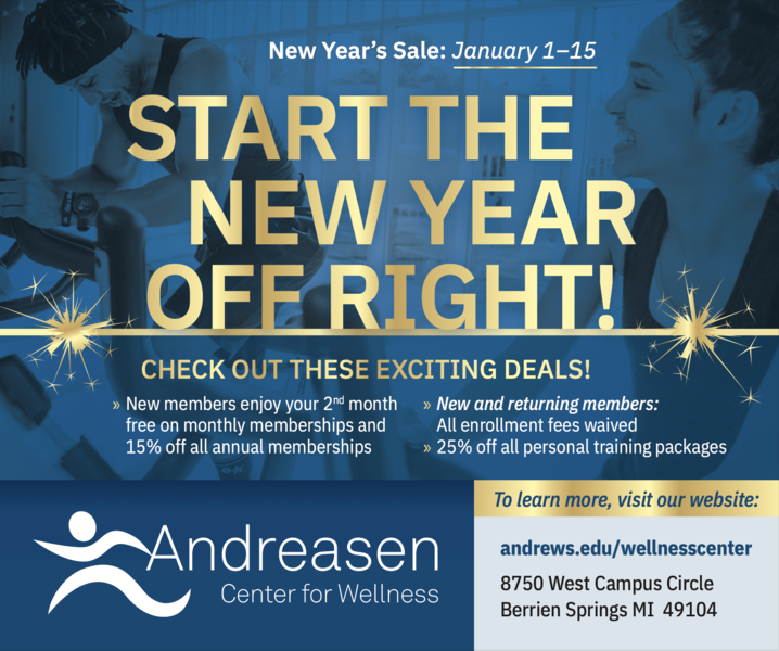 The Andreasen Center for Wellness will have its annual New Year's Sale from Jan 1–15. Current Members: Get 25% off of all personal training packages! New Monthly Members: Get your second... read more
