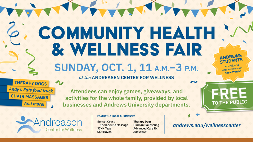 The Andreasen Center for Wellness will host a Community Health and Wellness Fair on Sunday, Oct. 1, from 11 a.m.–3 p.m. Attendees can enjoy games, giveaways and activities for the whole family provided by local businesses and Andrews... read more