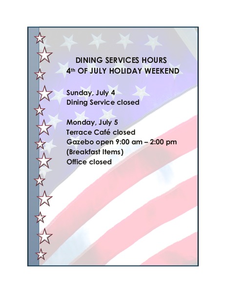Dining Services Hours for July 4 Holiday
