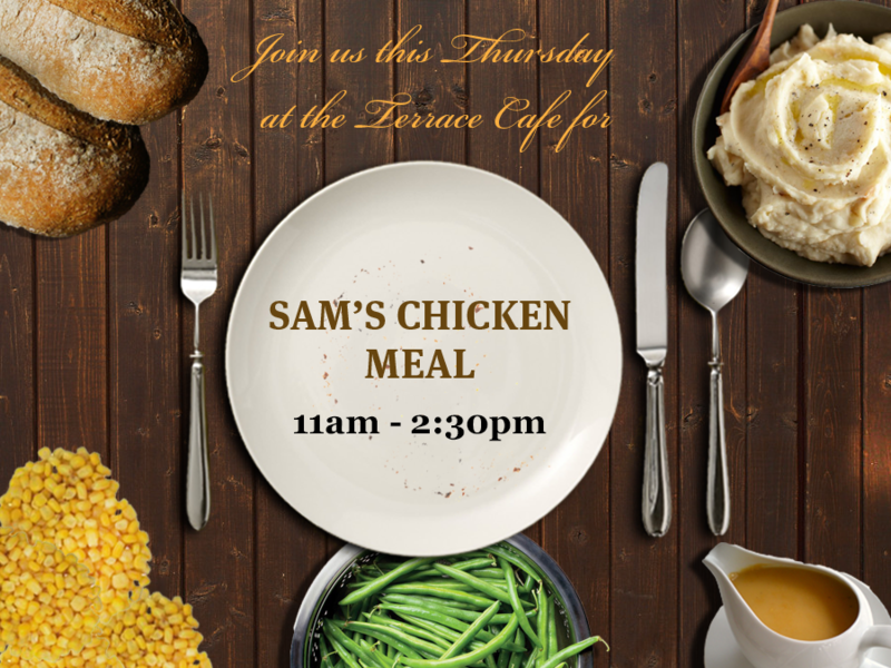 This Thursday, April 4, join us in the Terrace Cafe for Sam's Chicken and other awesome favorites!