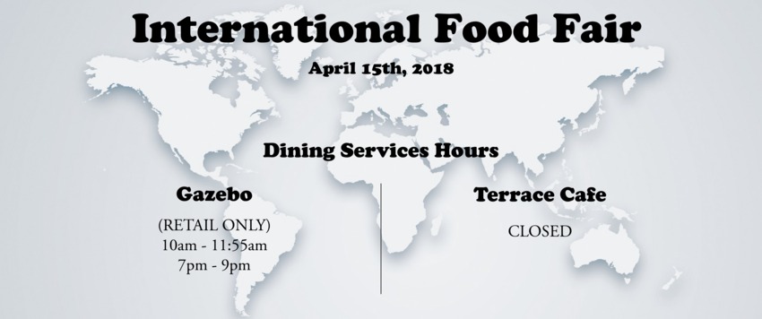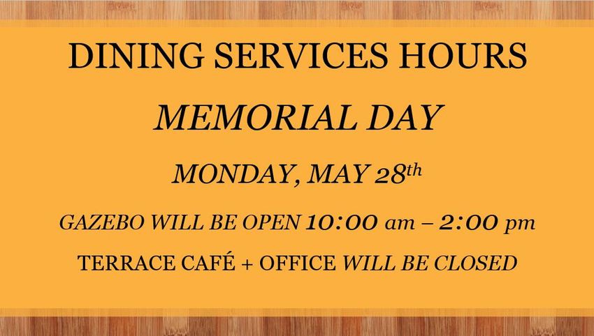Graduation 2018 is around the corner! Check out the changed hours for Friday, May 4; Sabbath, May 5; and Sunday, May 6 for both the Terrace Cafe and Gazebo.