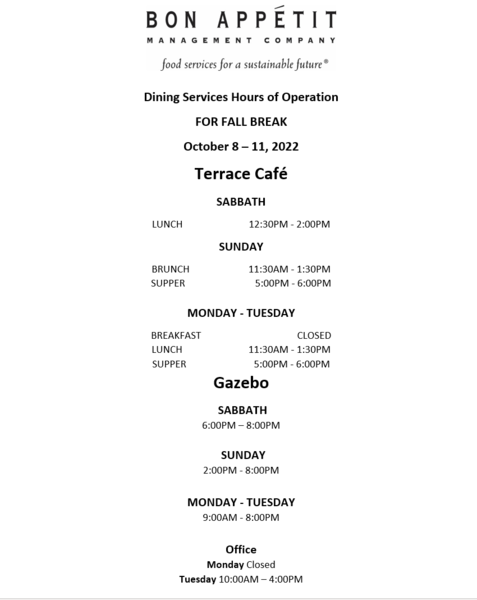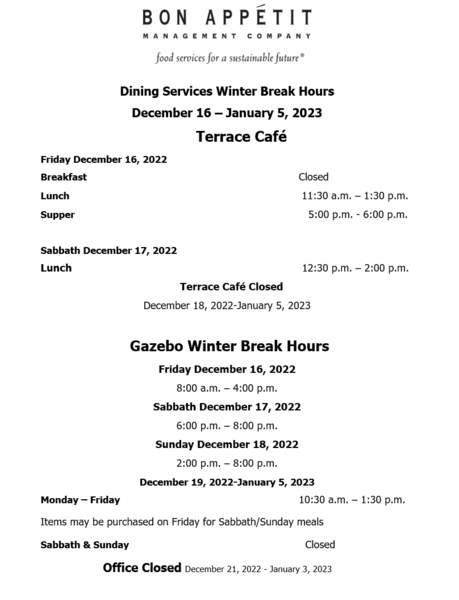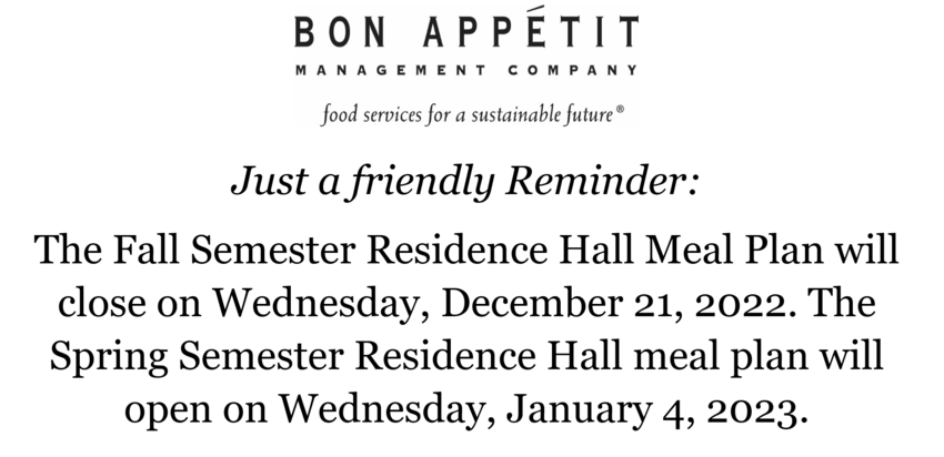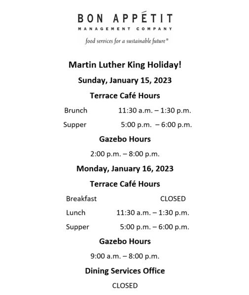 Please note the Dining Services hours for the MLK Holiday Weekend.