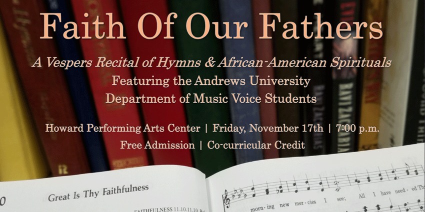 Featuring the voice students of the Department of Music. Come and join us for a journey through marvelous hymn arrangements and settings of African-American spirituals.