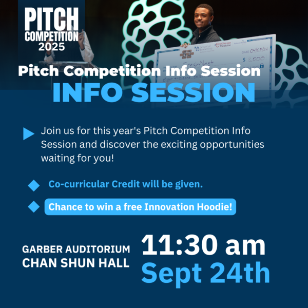 Location: Garber Auditorium, Chan Shun Hall Date and Time: Sept. 24, 11:30 a.m. Description: The 2025 Pitch Competition will distribute $30,000 in cash awards through a selection process... read more