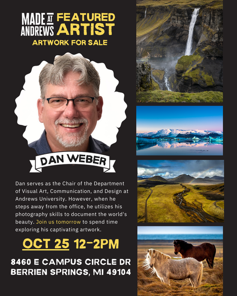 Come on out as we showcase Professor Dan Weber's photography at the Made at Andrews store! Spend time with us exploring his photography and meeting the artist in person.   ... read more