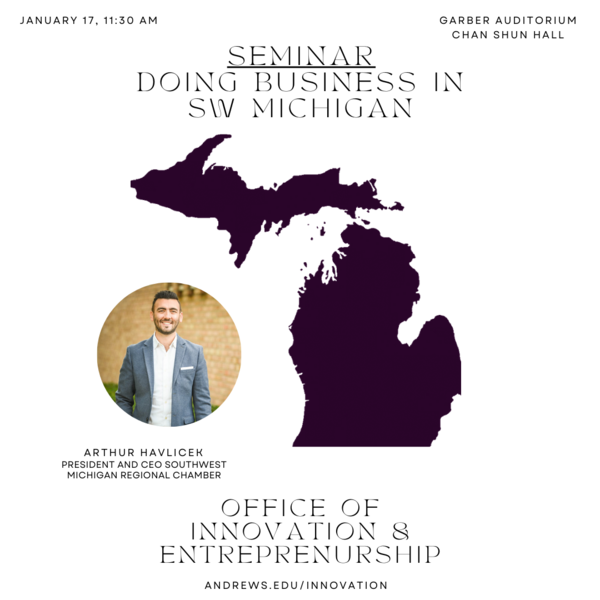 I&E Seminar Tuesday, Jan. 17, 11:30 a.m., at Garber Auditorium, Chan Shun Hall Arthur Havlicek, president and CEO of the Southwest Michigan Regional Chamber: Arthur has nearly a decade of public... read more