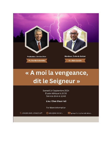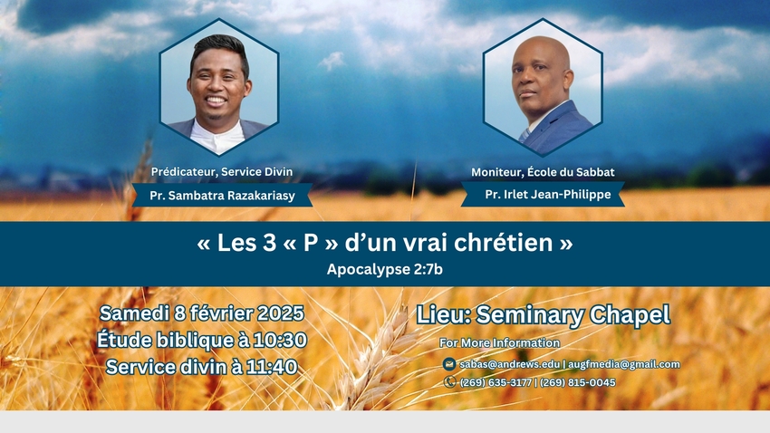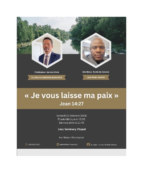 Sabbath School: 10:30 a.m. with Alain Coralie