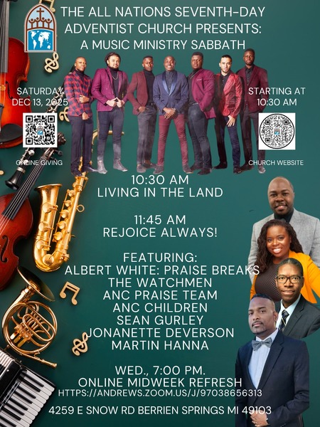 You’re invited to Music Ministry Day! This Saturday, Dec. 13, at 11:45 a.m., join us at All Nations Seventh-day Adventist Church (ANC) for a powerful day of worship through music. Our theme is “Rejoice Always”—a celebration of joy,...