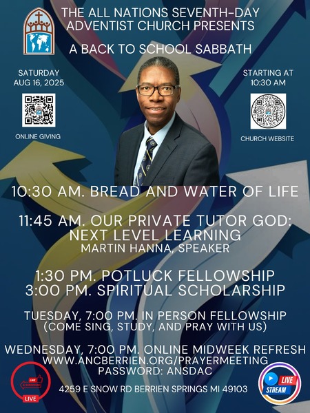 Join the All Nations Seventh-day Adventist Church for our worship experience this Sabbath, Aug. 23, at 11:45 a.m. as Clifford Wallace presents "The Uncomfortable Gospel." Adult and Children's Sabbath School begins at 10:30 a.m. We will have breakfast...