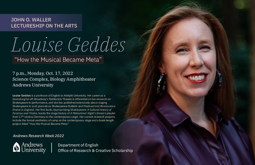 The John O. Waller Lectureship on the Arts (2022) will feature Louise Geddes, professor of English at Adelphi University, on the topic "How the Musical Became Meta." Geddes' career as a dramaturg for off-Broadway’s Rattlestick Theater is influential on... read more